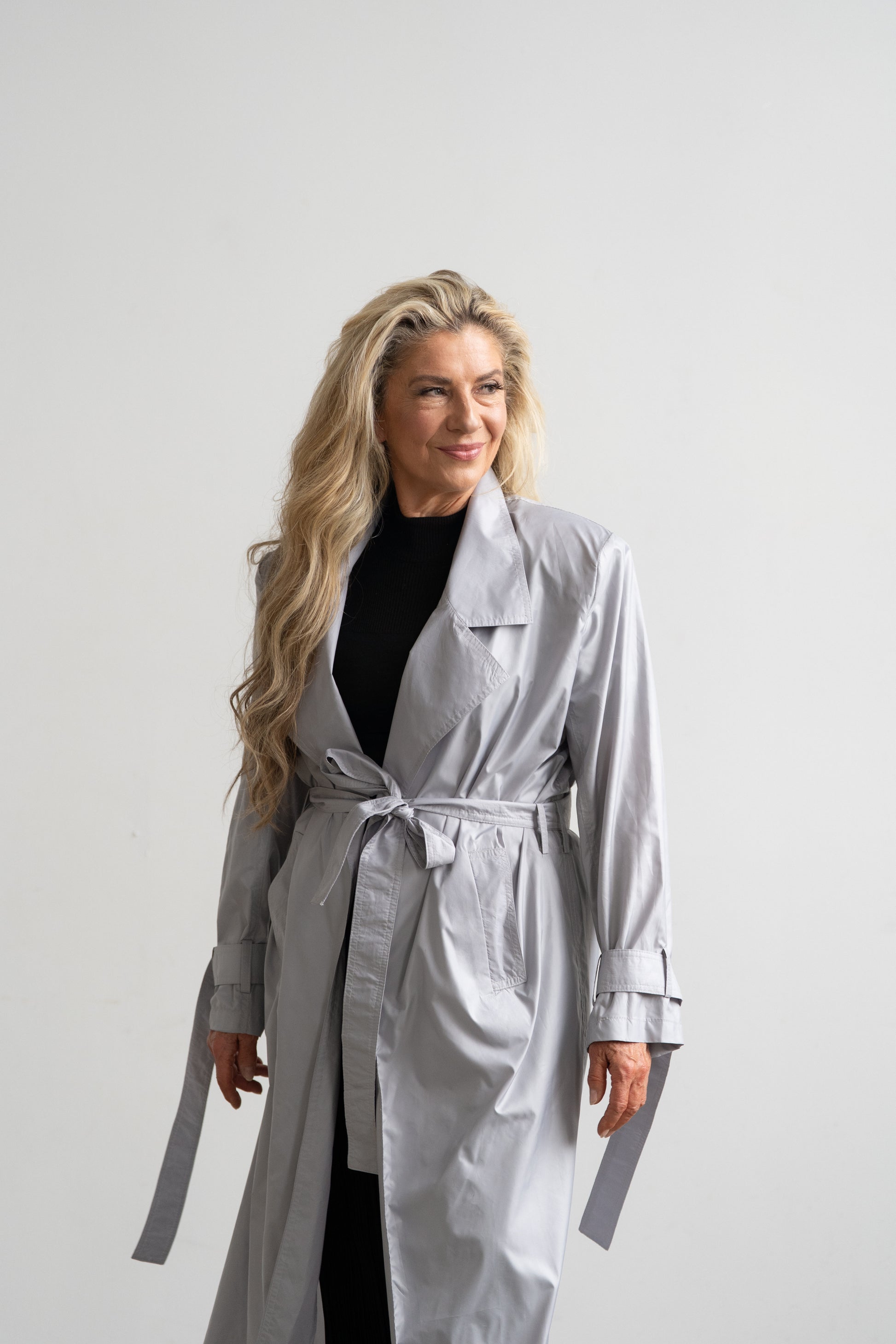 This coat is the perfect lightweight/featherweight coat for the woman who is always on the go. This is a versatile water-repellant coat with removable shoulder pads, an oversized lapel, adjustable straps on the sleeve and waist, and pockets.. This coat can be folded into a purse. This is something you can wear on a night out, on a grocery run, on a rainy day, without compromising style in any motive.